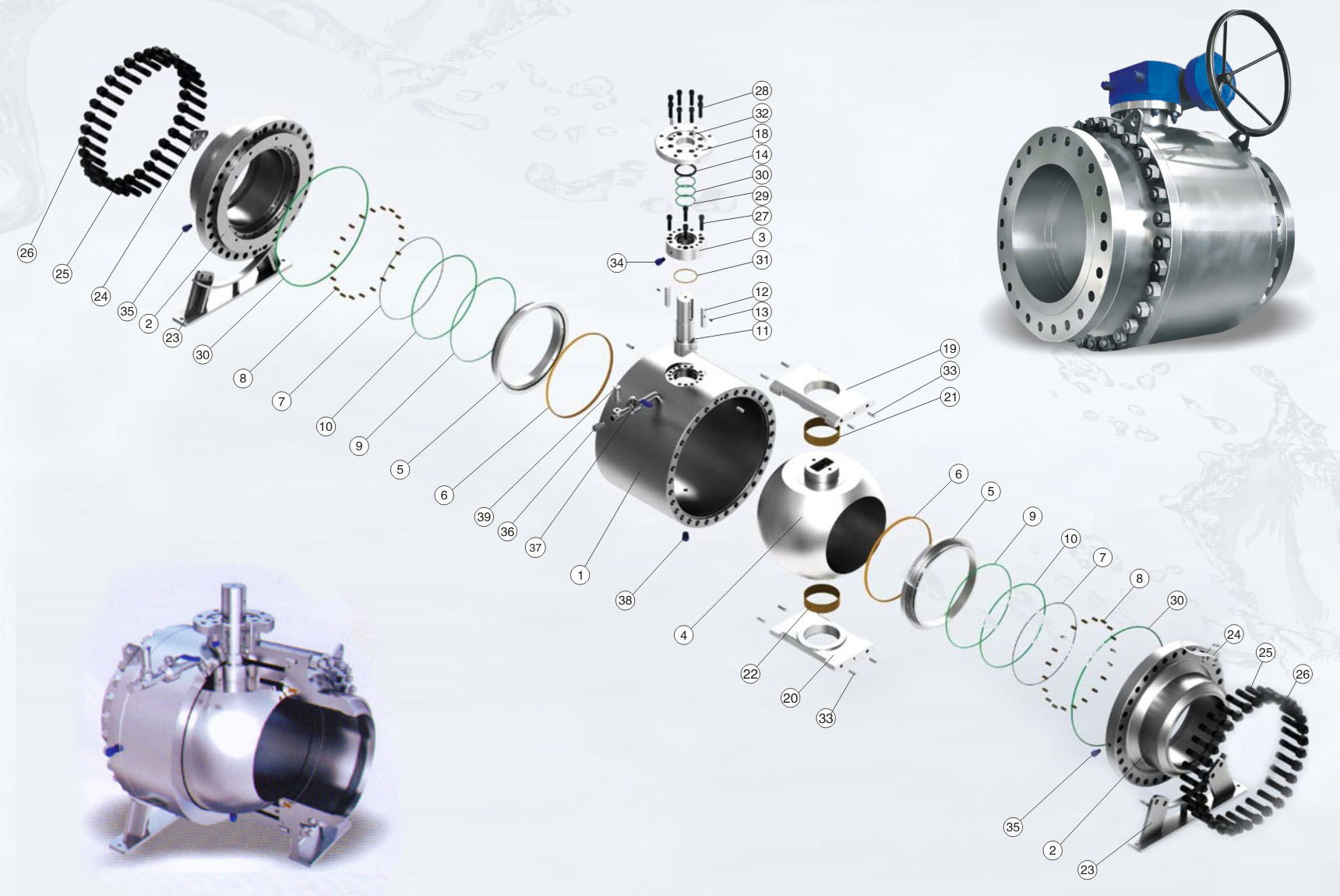大口徑球閥的相對連動部{間座和閥桿軸承)由于采用了磨擦系數(shù)小的特氟